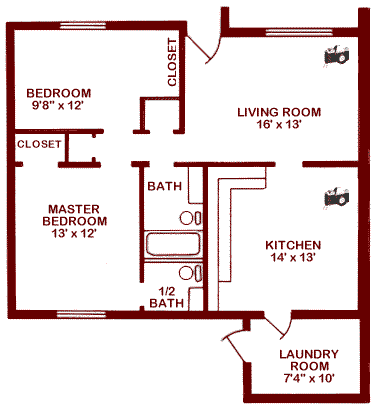 TWO BEDROOM / ONE AND HALF BATHROOMS