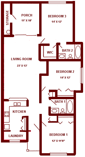 THREE BEDROOMS / TWO BATHROOMS
